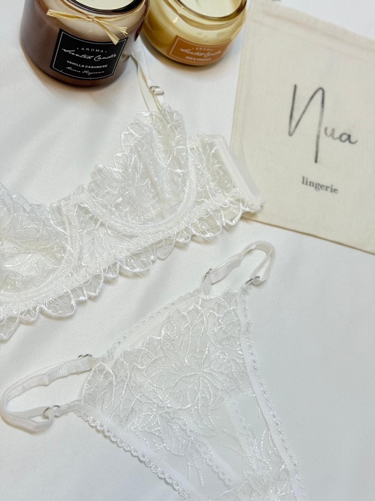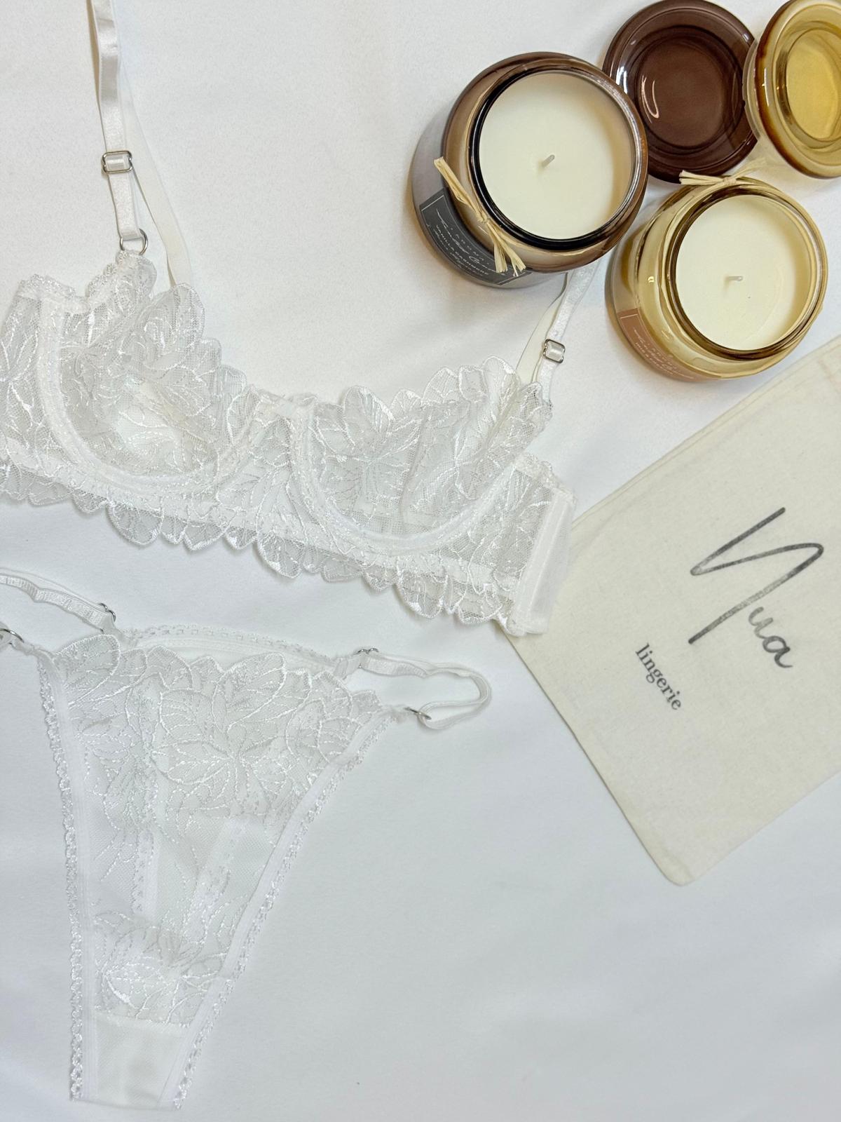Saf beyazın zarafetini yansıtan Pure Blossom Set, transparan tül üzerine işlenmiş çiçek detaylarıyla feminenliği ön plana çıkarıyor. Minimal ama etkileyici görünümü sayesinde hem günlük kullanımda hem de özel anlarda tercih edilebilecek eşsiz bir parça.